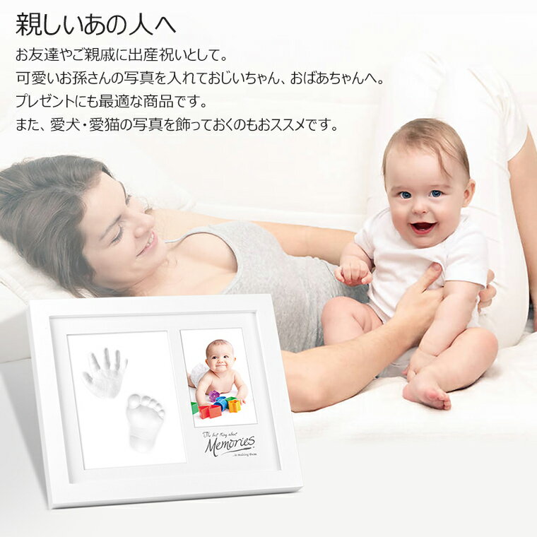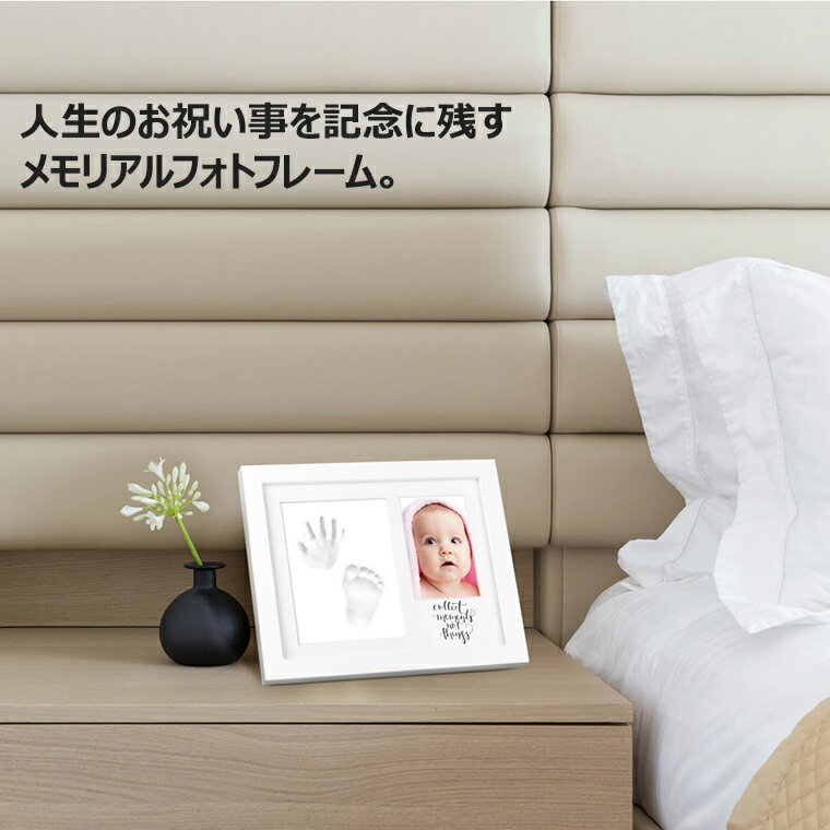 【商品説明】 天然ナチュラルな木製ホワイトフレームに、赤ちゃんの小さな足形や手形を型取りできる、温もりいっぱいのフォトフレーム♪