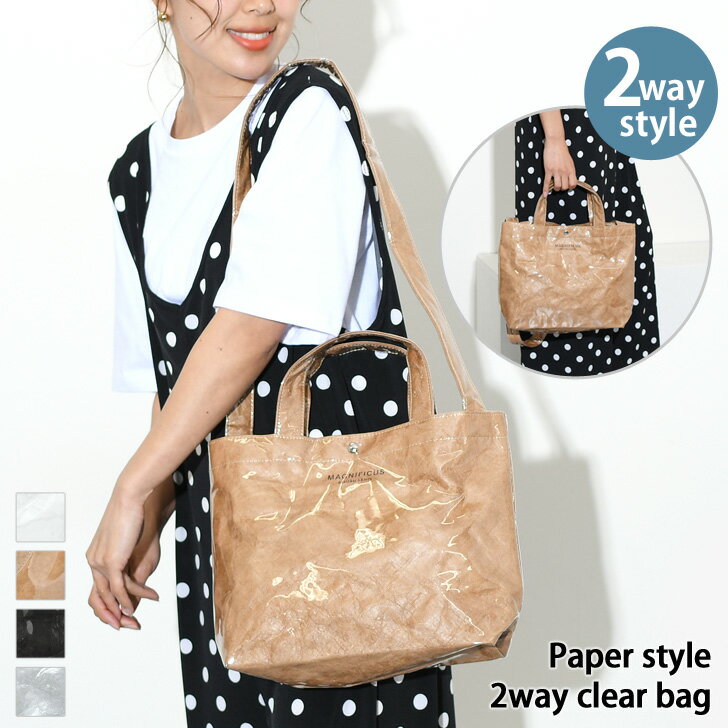 送料無料 2way ペーパー風 クリアバッグ レディース トートバッグ ショルダーバッグ ハンドバッグ ミニバッグ 小さめ 斜めがけ 大人 軽量 おしゃれ 通勤 ビニールバッグ PVC 透明 斜め掛け カジュアル 可愛い